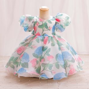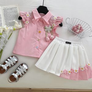 2025 summer new baby flower short sleeve puff sleeve top elastic waist pleated skirt girls 2 pies suit