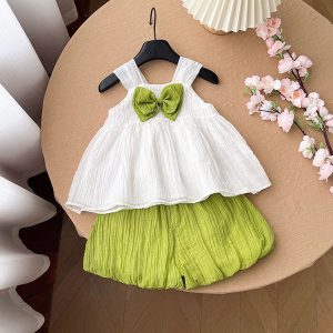 Girls summer vest shorts suit stylish short-sleeve children’s summer fashionable two-piece suit